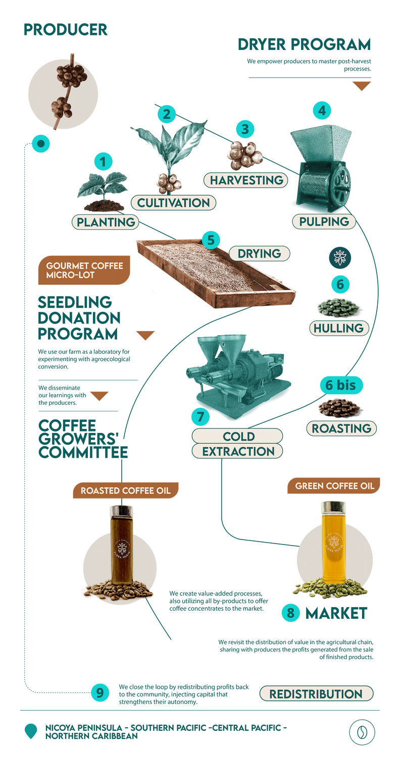Conceived as a solutions laboratory, this program goes far beyond the commercialization of green coffee. While our journey began with coffee oil, we have expanded our scope to address the value chain in its entirety, tackling challenges at their root.