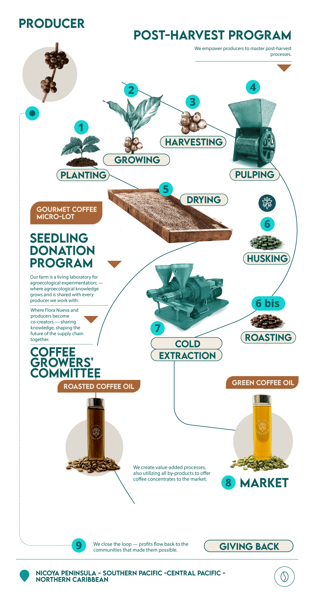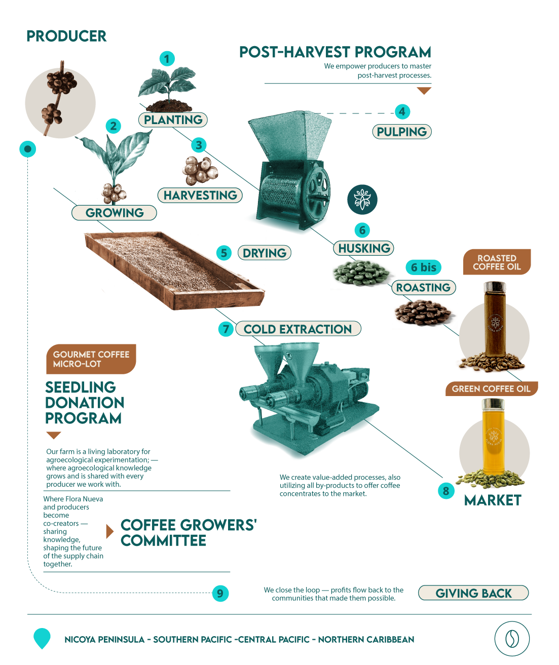 - Diversification & Added Value We dare to explore every way to add value to coffee — developing innovative products like coffee oil and coffee extract. This approach not only multiplies economic redistribution opportunities for producer families, but strengthens Flora Nueva’s resilience and sustainability, allowing it to grow and compete in one of the world’s most demanding global value chains.
