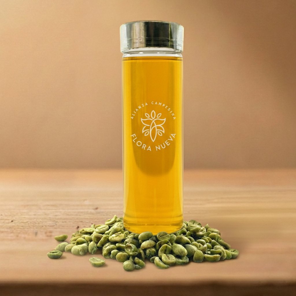 Nuestro Óleo de Café Verde es un extracto puro obtenido de granos seleccionados en su estado crudo, antes del tostado. Esta «materia viva» concentra altos niveles de ácido clorogénico y diterpenos, convirtiéndolo en un superalimento líquido. Es un aliado doble: funciona como un potente sérum antioxidante para la piel y como un suplemento nutricional que apoya el metabolismo y la protección celular desde adentro.