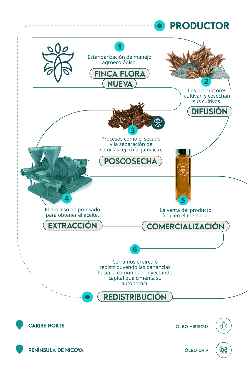 Este programa transforma cultivos como la Chía y el Hibiscus (Jamaica) en aceites de alta pureza mediante un modelo de cooperación profunda. No compramos simplemente la cosecha; co-creamos la cadena completa: